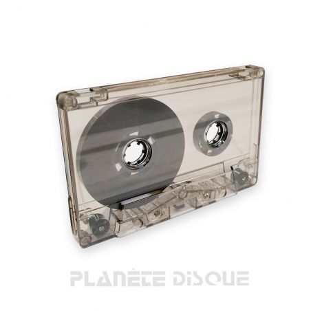 Transparent dark brown audio cassettes, loaded with high-quality Ferro tape. Duration 90 minutes. Without plastic tab in the writing protection hole, to record it must be closed with a piece of tape or something similar. Black rolls and guides. Newly manufactured, no old stock. Packing: 1 piece.