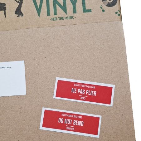 Red labels 70 x 25.4 mm with the text VEUILLEZ TRAITER AVEC SOIN - NE PAS PLIER - MERCI. Permanent adhesive. Pack: 1 x A4 sheet with 33 labels. Ideal for your shipments to France.