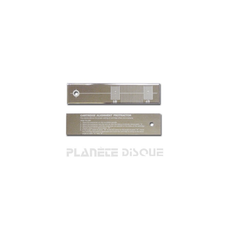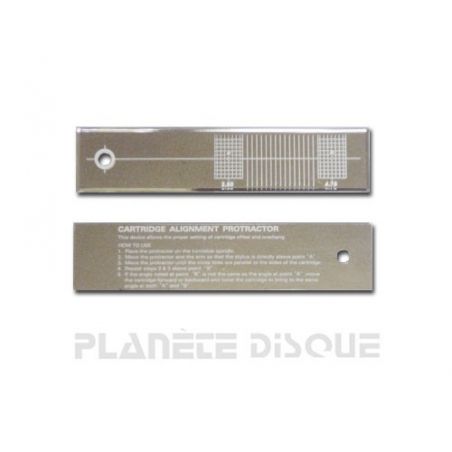 Plastic template for optimal adjustment of the headshell system. With this model, you can adjust the offset angle (the angle between the longitudinal axis of the cell and the axis of the tone arm) and the advance (or "overhang": the distance between the needle and the axis of the plate). Packaging: 1 piece.
