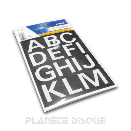 Letras autoadhesivas blancas de 25 mm de altura. Se pueden pegar en nuestros separadores de identificación LP 33 rpm negros, grises y rojos para organizar fácilmente tu colección de vinilos. Fabricadas con film de plástico resistente.