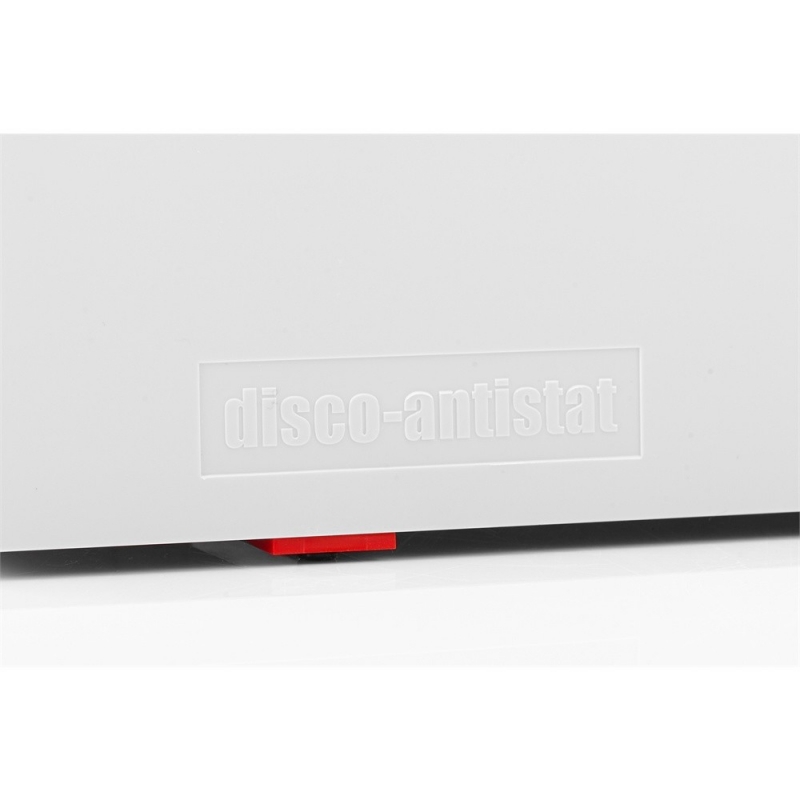 La famosa "Disco-Antistat" de Knosti está en el mercado desde 1978 y se fabrica en Alemania. El dispositivo limpia a fondo los surcos y neutraliza la carga estática durante un largo periodo. Ahora también está disponible en esta segunda generación. La diferencia con la primera generación es la manivela para girar el disco sin tocarlo y los protectores con juntas de goma para proteger la etiqueta del disco de los líquidos.