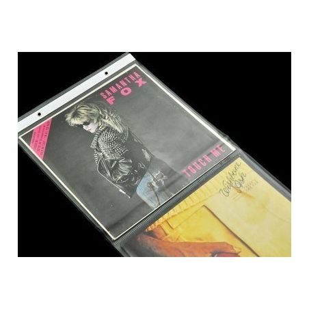 Portadiscos de polipropileno mate antirreflectante (0,15 mm) con 5 bolsillos. Presentación ideal para tiendas de discos, coleccionistas, vendedores de segunda mano, ferias, etc. El portadiscos está perforado con 2 agujeros para colgarlo fácilmente en una pared u otra superficie vertical. Dimensiones: 1650 x 333 mm.