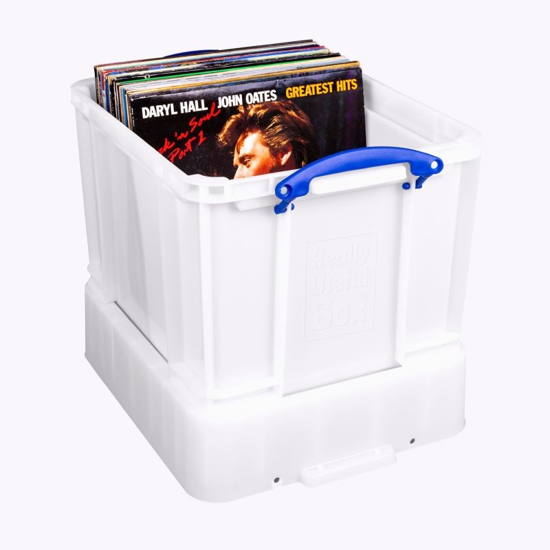 Caja de plástico de polipropileno blanco óptico especialmente diseñada para transportar y almacenar discos de vinilo de 33 rpm. Equipada con asas de cierre laterales para facilitar la fijación de la tapa a la caja. La tapa de la versión XXL es más alta que la de la versión estándar, lo que permite almacenar los discos con los separadores de identificación. La caja puede apilarse con o sin tapa (es la tapa la que mantiene la caja en la parte superior, no los discos). Base perfectamente plana y reforzada. Fabricada en Inglaterra. Dimensiones exteriores: longitud 480 x profundidad 385 x altura 375 mm, dimensiones interiores: longitud 375 x profundidad 317 x altura 340 mm, peso: 2,5 kg. Capacidad: hasta 100 discos aproximadamente.