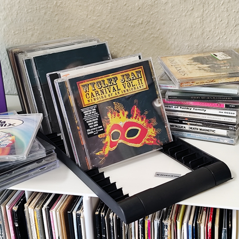 Support de rangement pour présenter 20 CDs. Sélection rapide d'un CD par une recherche facile. Idéal pour les disquaires, les DJs, les commerçants sur les salons ou les marchés aux puces et aussi pour chez soi. Plastique robuste, équipé avec 4 pieds en caoutchouc anti-glisse. Conditionnement : 1 pièce. Dimensions : 147 x 355 mm, hauteur avec CDs inclus : 130 mm.