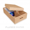 Boite en carton pour ranger, exposer ou transporter 100 boîtiers CDs. Pour des utilisations de stockage, même 120 boîtiers CDs peuvent y être rangés, en les serrant. Elle est facile à porter grâce aux 2 poignées découpées. La boîte est en carton kraft rigide et elle est divisée en deux compartiments. Elle est équipée d'un couvercle qui coiffe complètement la boîte. Nos intercalaires d'identification y rentrent aussi. Dimensions extérieures (avec couvercle) : largeur 327 mm x profondeur 572 mm x hauteur 150 mm. Dimensions intérieures : (2 compartiments de chacun) largeur 151 mm x profondeur 550 mm x hauteur 145 mm. Conditionnement : 1 pièce.