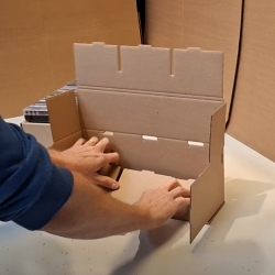 De doos wordt plat geleverd en moet zelf worden gevouwen en gemonteerd. Hier vindt u een YouTube-video met de montage van deze doos.